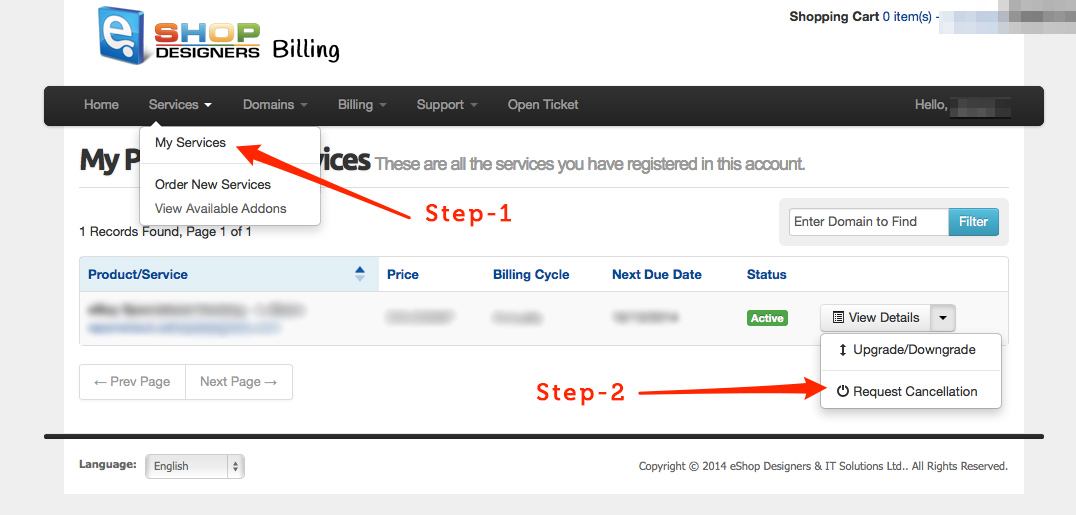 First of all, kindly login into your eShop Designer's Billing account (Click here to Login) and then follow below steps for your required service.